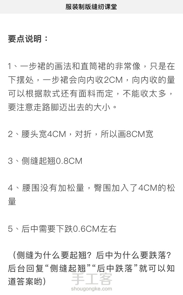 一步裙制版方法