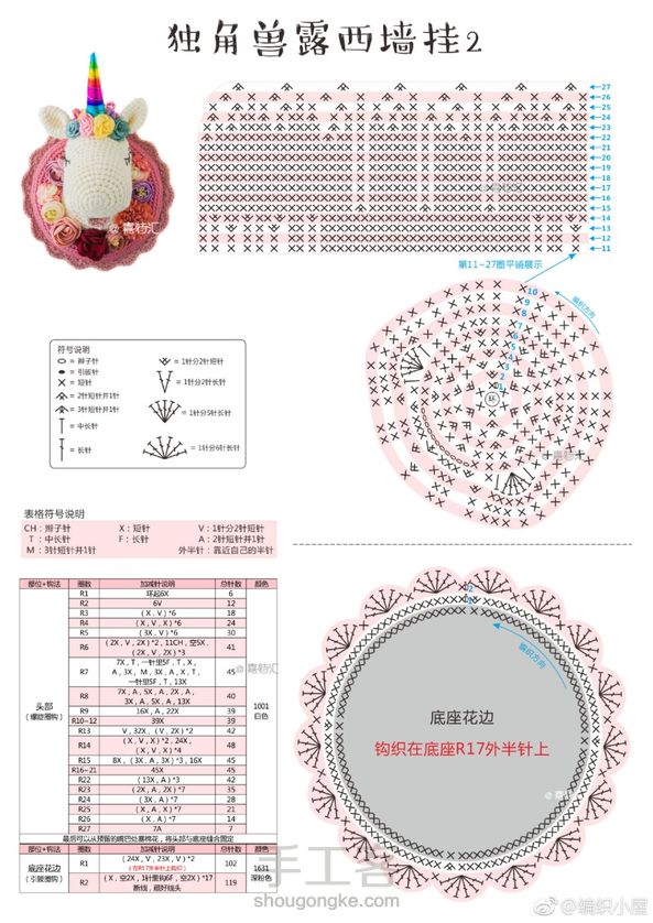 钩针图解,好精致的墙挂呀