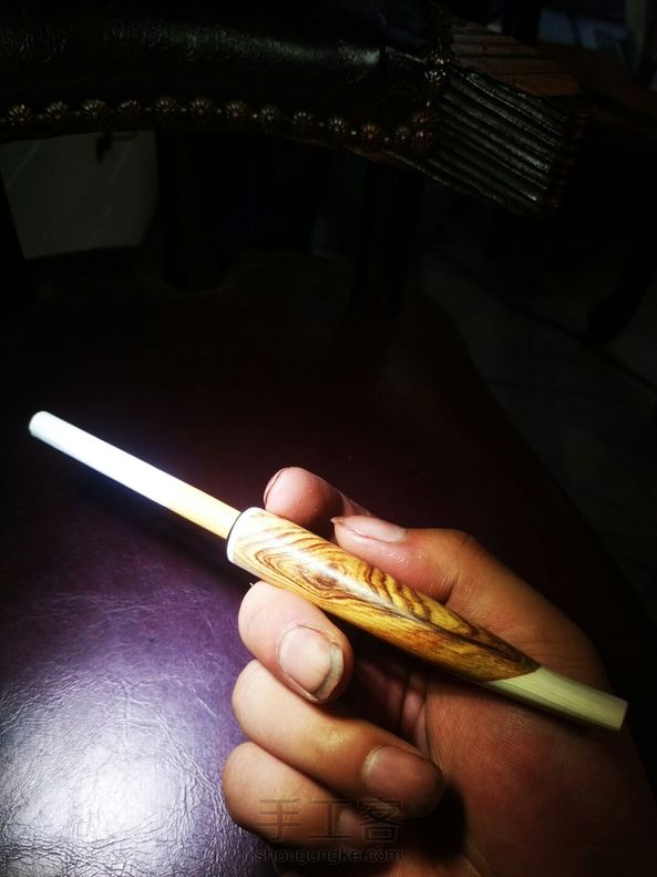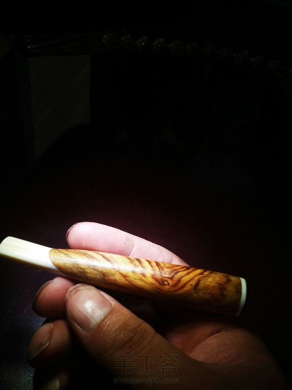 海南黄花梨,镶嵌牙料,烟嘴。