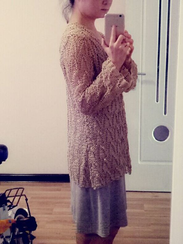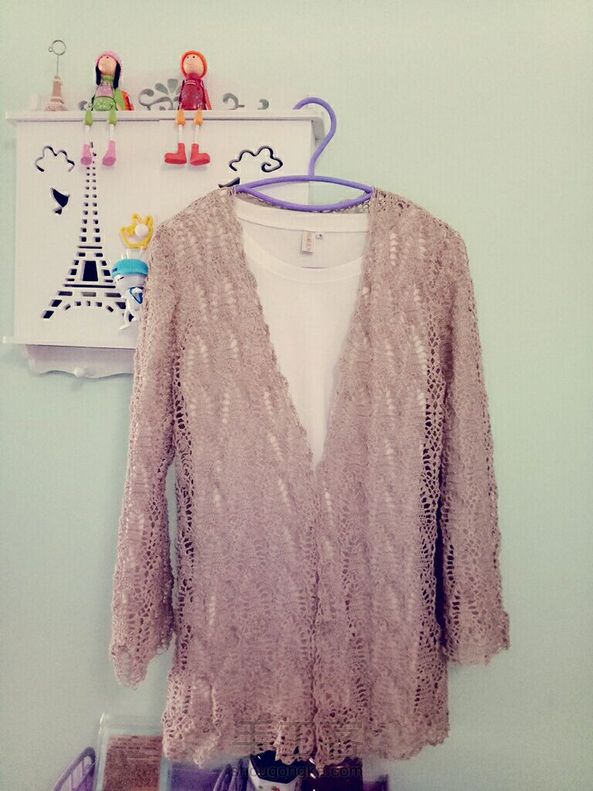 这衣服完成半个多月了,还没下水,记得生完的前一年钩了一一件浅紫色的,穿着刚好好,这次换了线反而大了,不过还是有颜色的好看一些