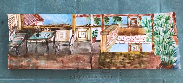 住在菲律宾巴拉望岛上的一个当地人房子里。住了5天,天天看海、买虾蟹、浮潜、烧菜、吹风、闲荡,这天下雨了,在客厅没事,把它画了下来,带回到杭州。