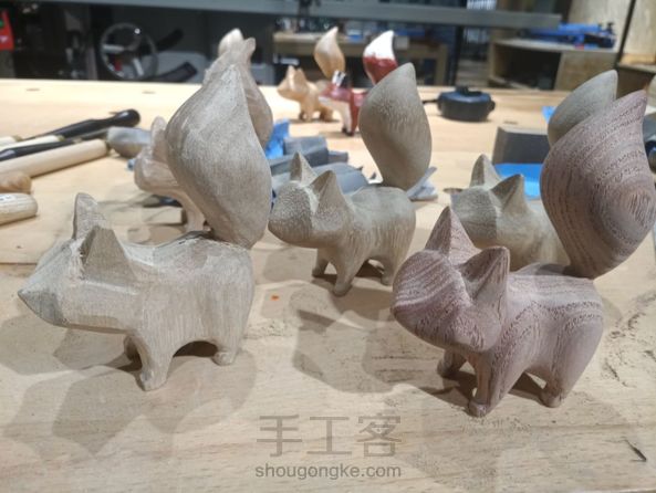 感受到自己不断的进步,上色那类型风格的也要练习一下,会比现在做的这种风格是要省不少力气,这次上蜂腊,颜色比较深,没图3之前做的上木蜡油颜色较浅好看吧?削一个小狐狸约两个小时,打磨五六个小时,雕刻一个要一天,换成紫光檀这类型硬度和密度的木料,时间还要多几倍,按照最精细的要求标准来做再快也快不了多少了,每个都是真正的心血,如果不考虑经济效益温饱问题,根本就不愿意售买,老一辈的手艺人从事某样手艺大多是为了温饱,现在新生代的手艺人,大多则是为了一种精神境界层次的追求.