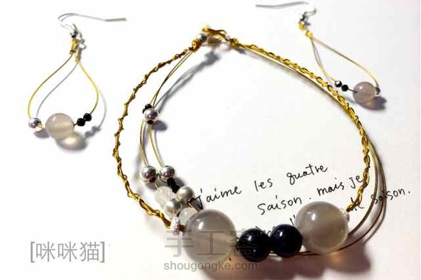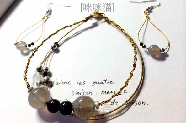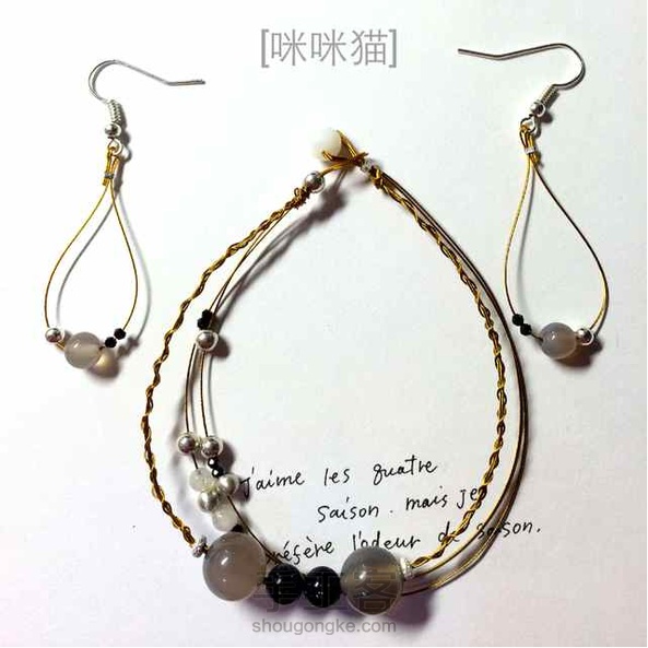 #小套装#之手串与耳饰,金黄线材与灰,黑,白,除去单色沉闷感。