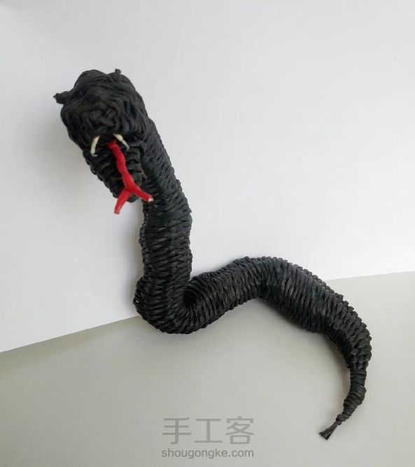 夜华😁纸藤蛇,经线有铁丝纸藤,纬线无铁丝纸藤。牙和蛇信为铁丝纸藤后粘上去的。