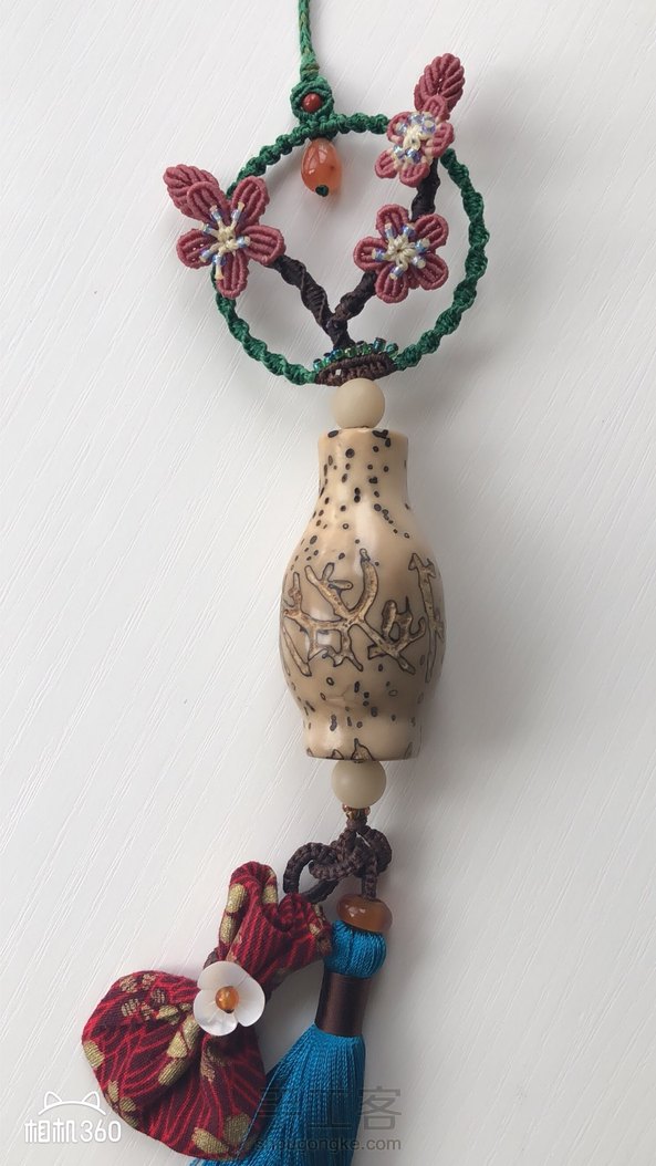 邻居拿来的千眼菩提瓶子,让我给整个车挂,看见瓶子我就想插朵花进去😂红布包里是她家宝宝的胎毛