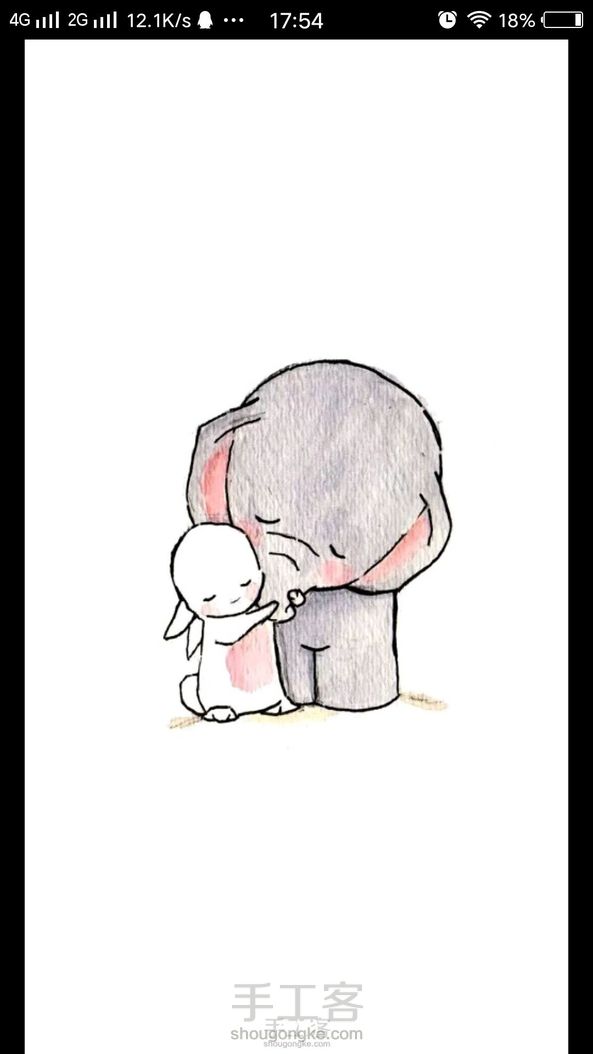 (转)一只小象与一只小白兔的友谊_治愈系风格动物手绘插画