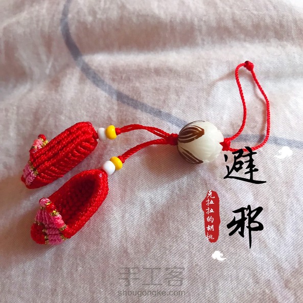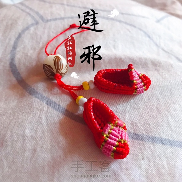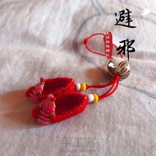 避邪,迷你鞋子挂件 来来来,消灭线头吧! 本来想着挂件上要绕个中国结的,可惜就只有这么长的线。挂包包上也不错!
