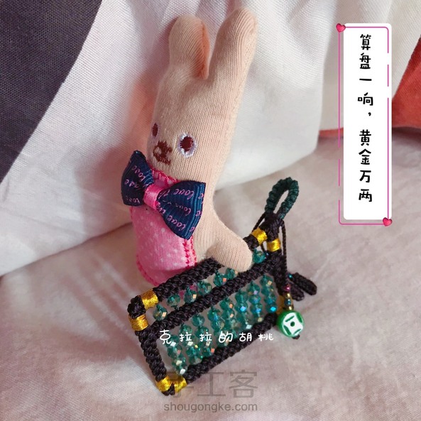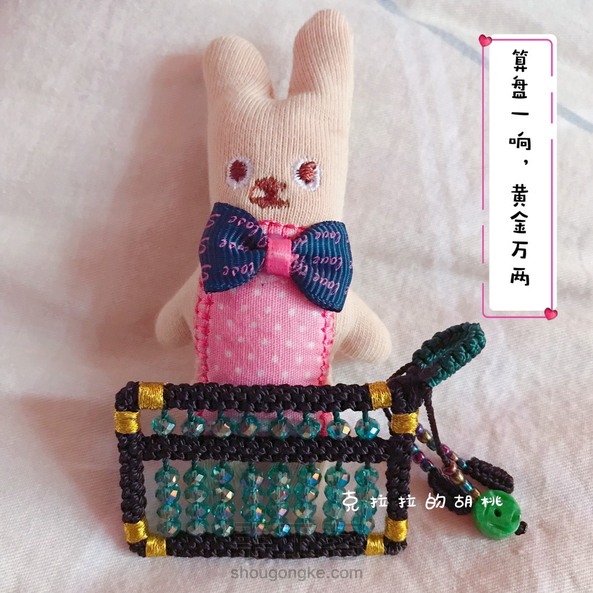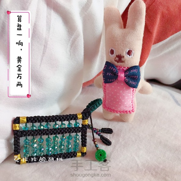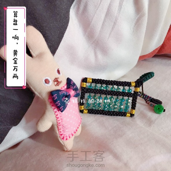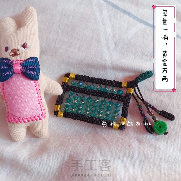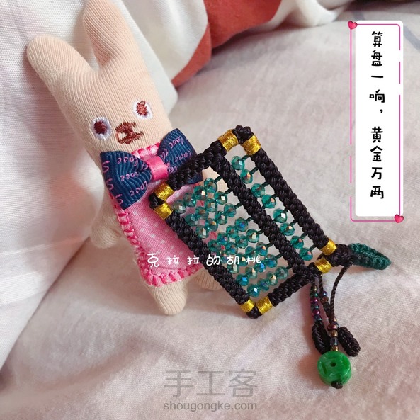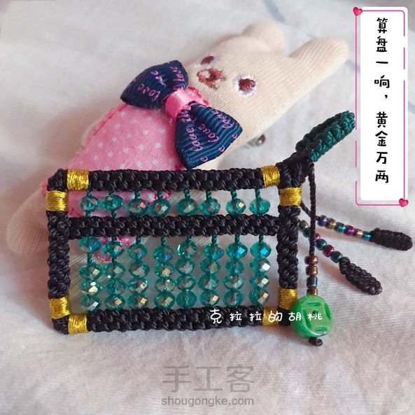 算盘一响,黄金万两 这个小算盘,算是呕心沥血了,昨晚硬是熬到零晨2点多,我这个人,兴致一来,就停不下来,扣子和串珠还是上午做的。 本想着是做一个毛衣链的,链子还没编,也没想好怎么编,先就这样。 说到这个玉米结,是我最最头疼的,每次编的时候都在想,再也不编这个结了,绕花了眼不说,还费手,我家里只有股线,打别的结还好,这个玉米结是手一放线就松,手勒得可疼了,活受罪。 不过看到成品,自己也陶醉,又在想,啥时候再串个碧玺的小算盘? 不说了,上图吧!