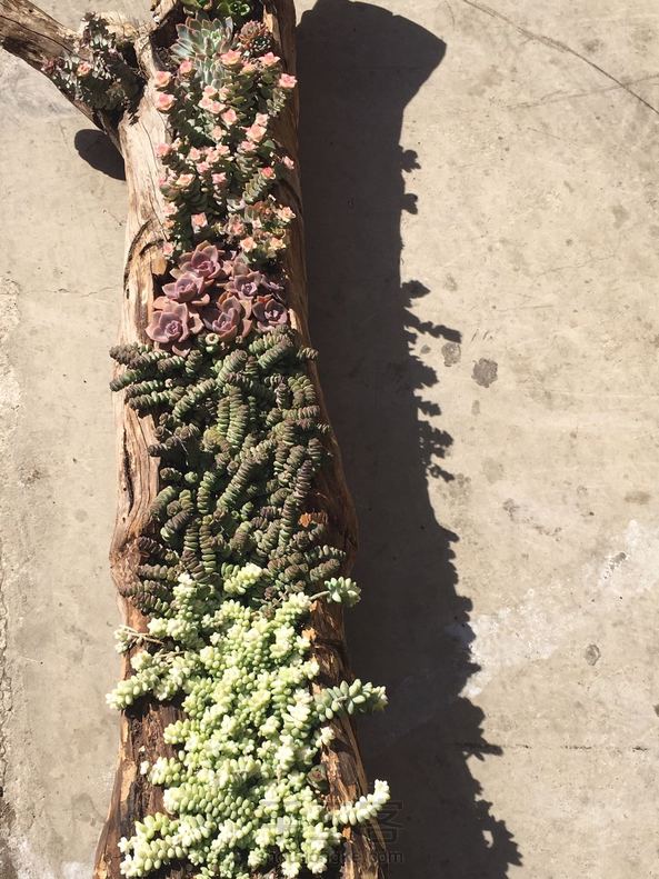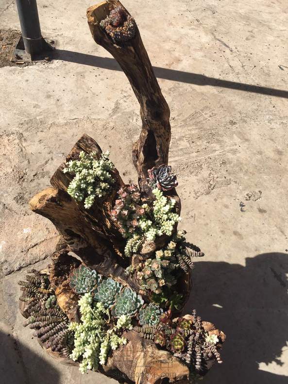 吃中饭的路上偶遇美美的多肉,老板很有创意,树根掏洞种的,大美啊