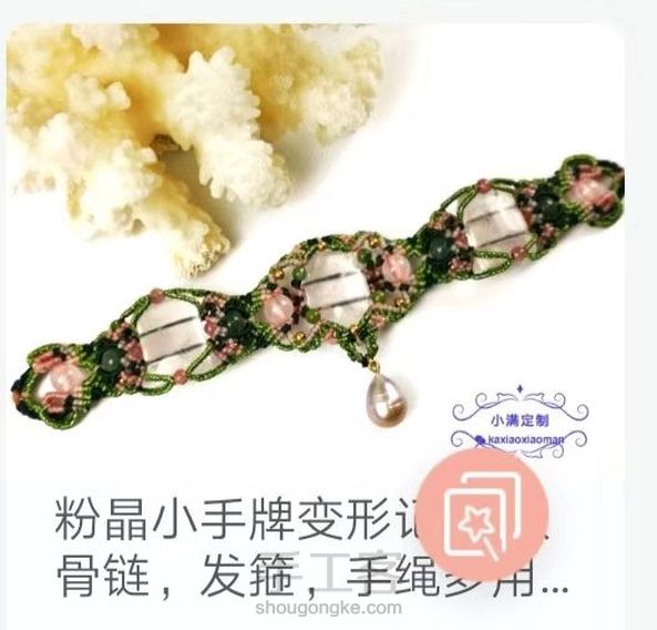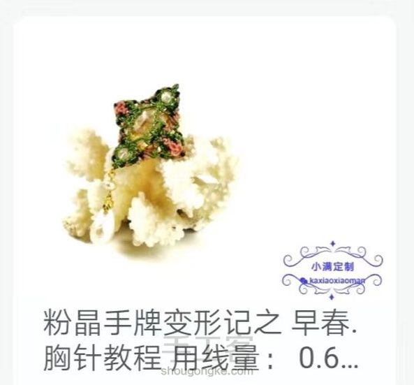 帮卡小满大神宣传一下新作,喜欢的赶紧报名哦! 粉晶手牌变形记系统课包含内容: 早春系列: 1戒指教程 2双面耳环教程 3胸花,边夹两用款饰品教程 4锁骨链,手链,发箍三用款饰品主体教程 理云鬓系列: 1 小插梳教程 2 双面簪教程 3 发夹教程 4 大蝴蝶插梳教程 附送教程 自制实用链接扣教程 自制珍珠夹扣教程 正价488,学员价458,首发活动价328。及刻起开始报名3月5日发布。超过30人报名课程每满10人所有报名学员减价10元,最低减至298,到298起每多10人增加赠送教程一款。