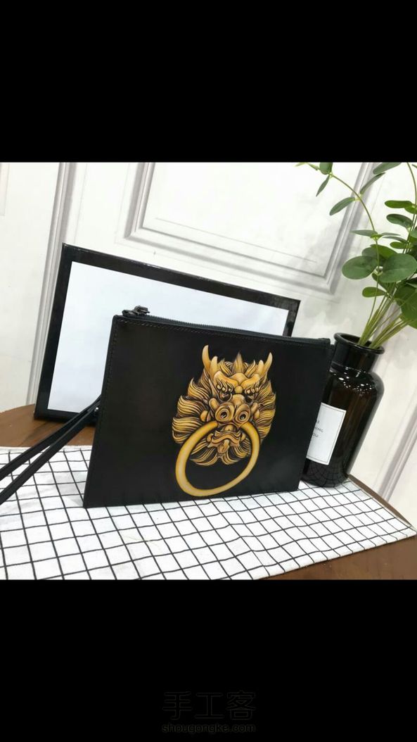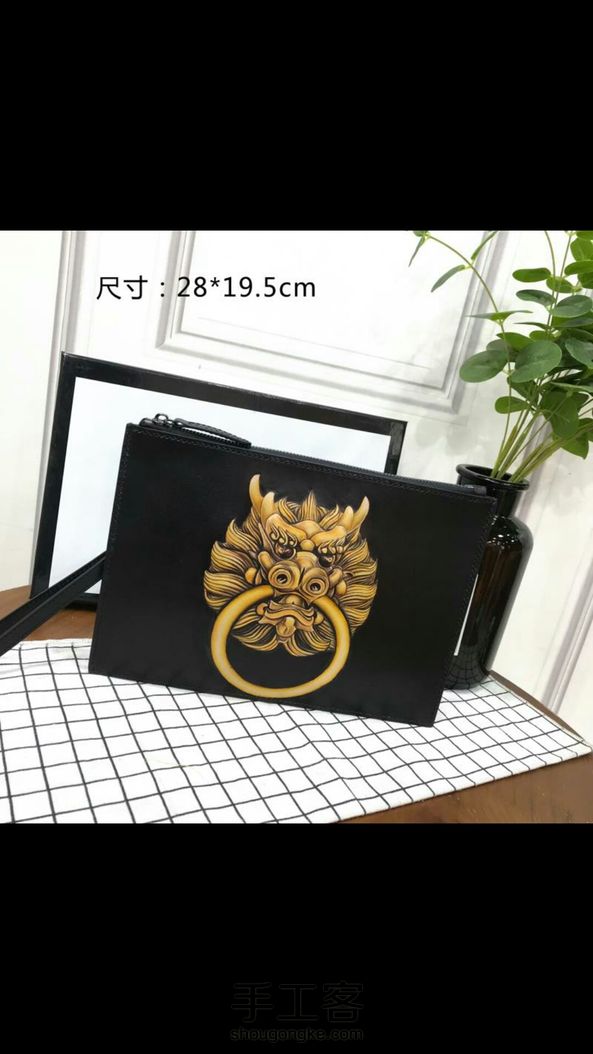 龙首植鞣皮雕绘手拿包520