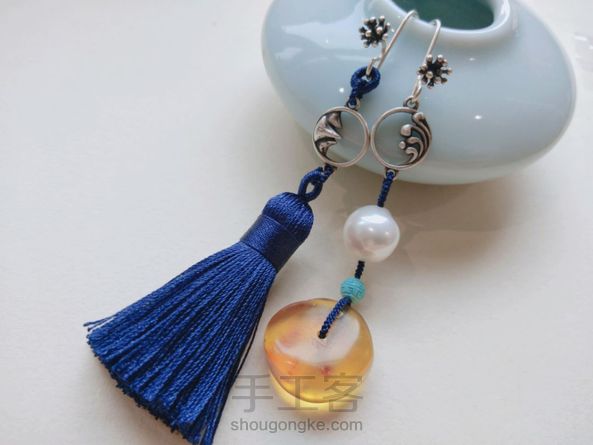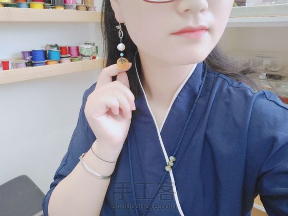 为自己做的耳坠,不太日常,但是配茶服还是很搭,超喜欢的