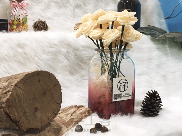 《很漂亮,感谢老师分享的教程,刚开始线选错了用的扁蜡线,导致花瓣上面有很多小孔,之后补救了一下串了一些珠子,成品很喜欢。》