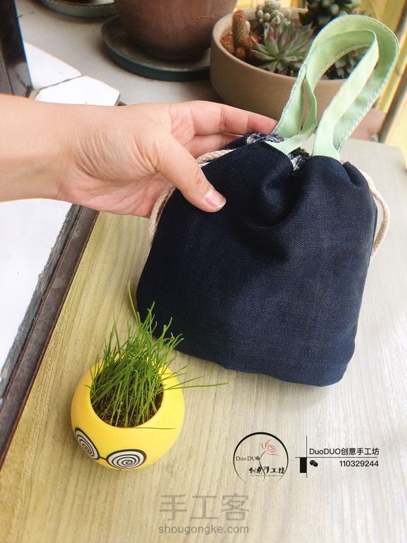 牛仔布旧物改造 小收纳之束口袋