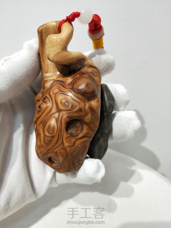 【超然根艺】 太行崖柏陈化料菩萨云纹根抱石手把件 “貔貅”把玩件