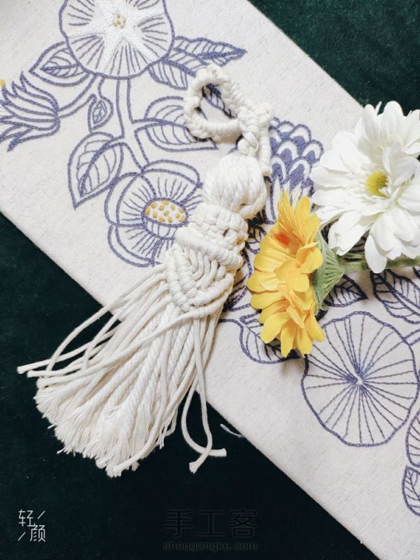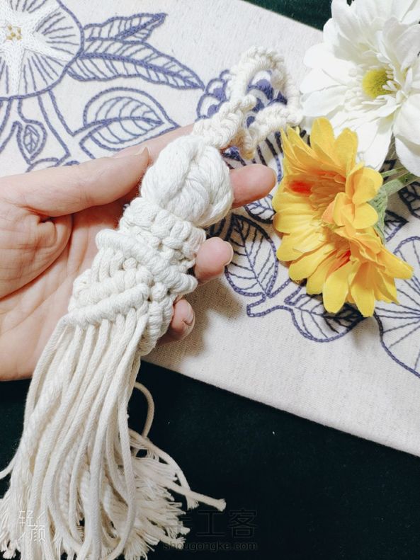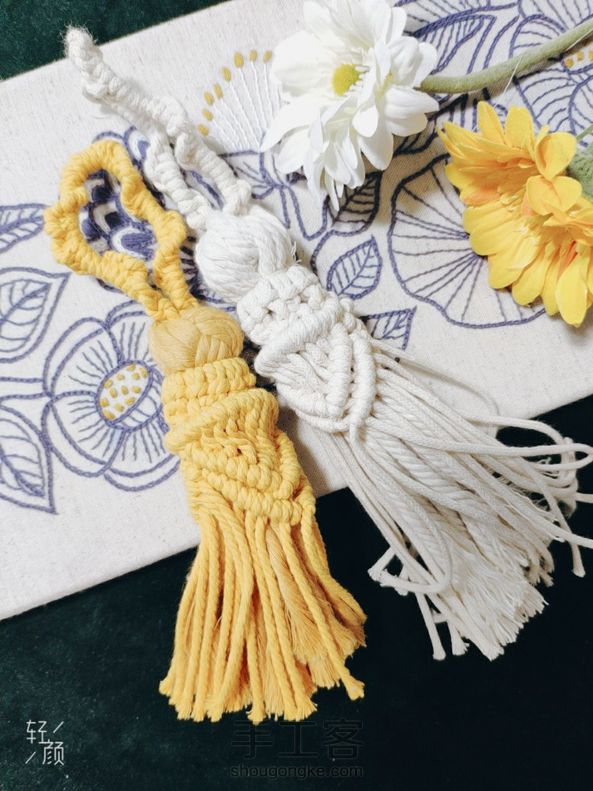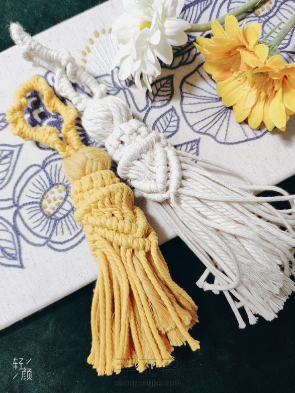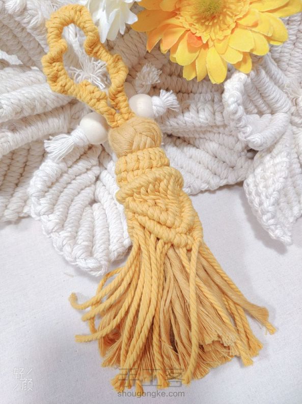 升级版大流苏 [cp]升级版大流苏使用材料: A.细绳(1.5或者3mm都可以) 用量:1m13根(做外部造型用),2米1根(做流苏上面的圈),50CM1根(做环绕捆绑用) B.粗绳(4mm单股或者三股棉绳都可) 用量:50CM8根(做流苏的内部结) 使用的结:单绕结,云雀结,方结,双绕结,捆绑绕结 各位小仙女:结比较简单,但是编织方法千变万化,可以创造任意的组合方式。