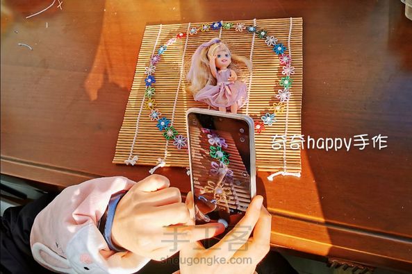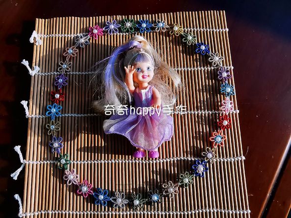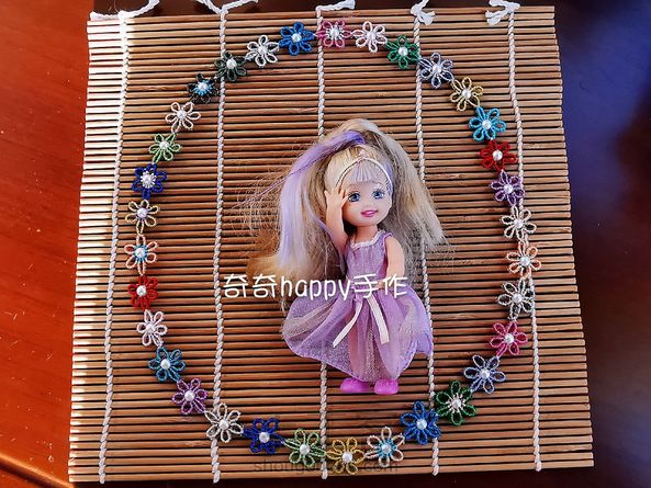 祝圈友们新年快乐!鼠年健康快乐!手艺更上一层楼! 彩金线线头编的花环,送女儿的新年快乐!