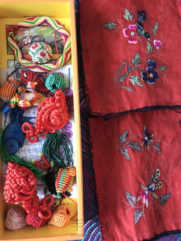 历年来的手工,右侧是姥姥的绣花