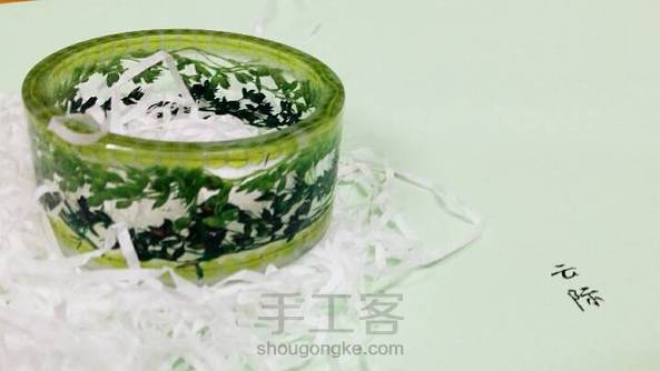 #全民动手嘉年华# 绿意。入坑4个月,做得最多的就是镯子,做手工滴胶的时候心情总会好些,总有太多不高兴,总得让自己平静下来,再跟随希望继续前行,带着这样的心态然后就有了这个镯子。 好吧前面说得太文艺,总之看着心情做手工,然后凑个热闹参加活动,就是这样╮(╯▽╰)╭