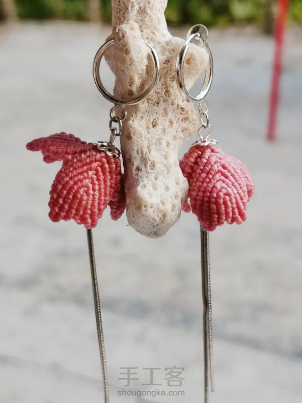 粉色小花耳环