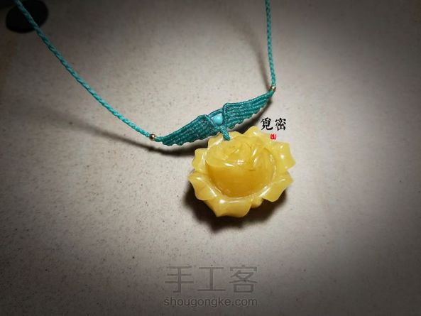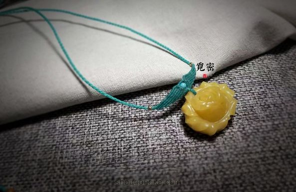 蜜蜡项链绳客定的。颜色选了好久,改了在改,还好最后这个很满意。