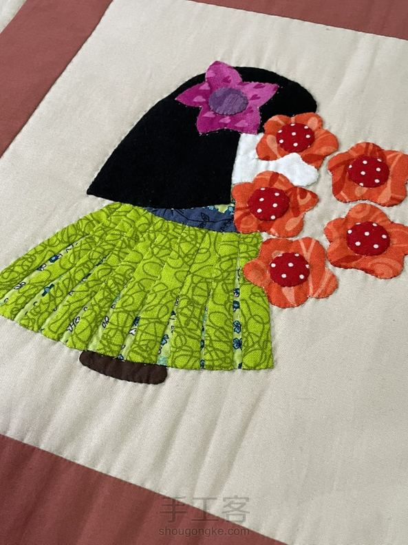 两年没来手工客了,都忘记怎样发圈了!做了四年的被子~手工贴布、压线、包边!纪念一下!