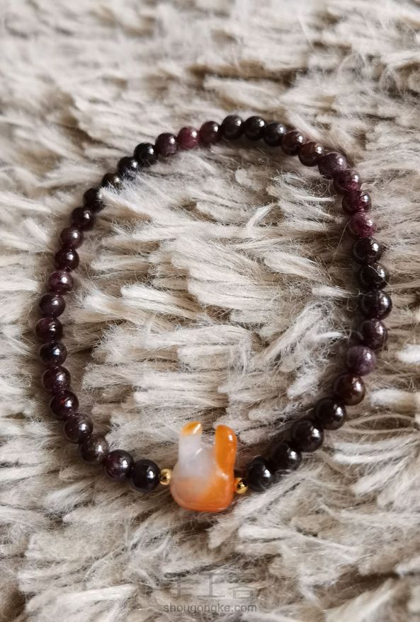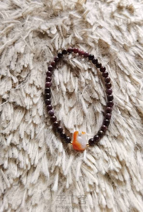 洒金翡翠小兔、石榴石手串