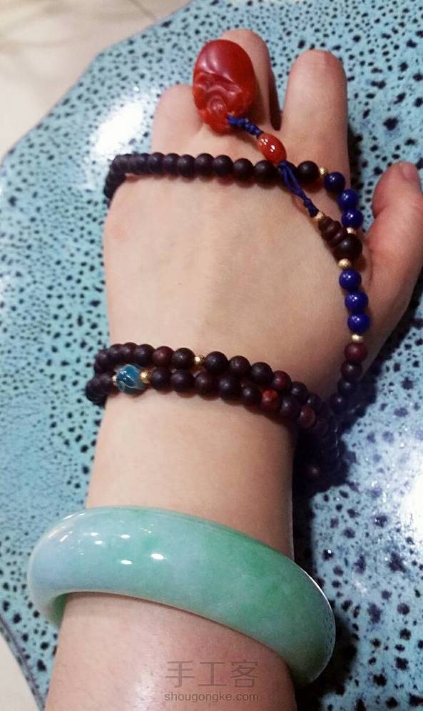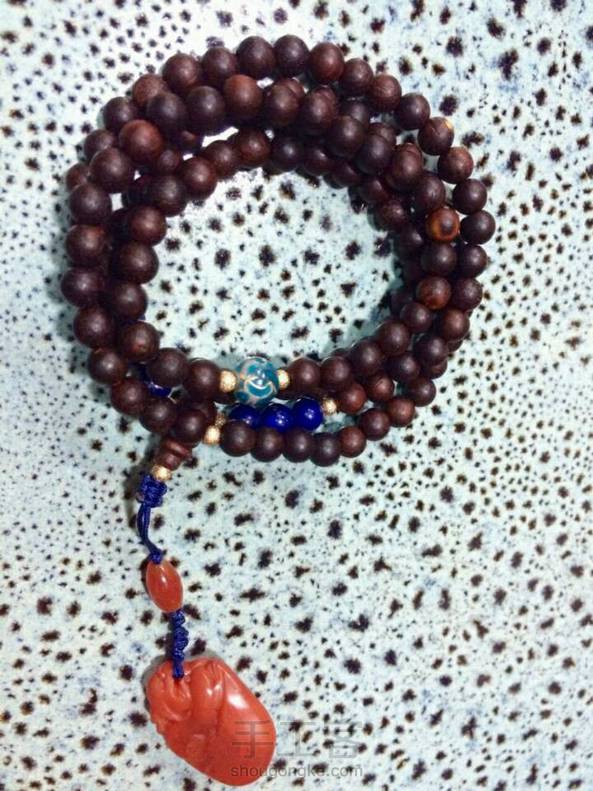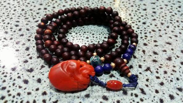 越南黄花梨108颗念珠 南红貔貅