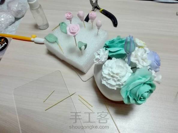 朋友定制的车饰摆件,盆子终于到啦,坚强的把剩下的部分完成了~分享下过程图,用的是轻粘土和树脂土😊。