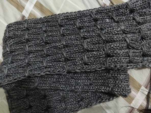 最初还只会织东西不会用钩针的时候,给老公,哦,那时候还不是老公呢,织的玉米花围巾,小金鱼和铜钱花手套,以及其他。