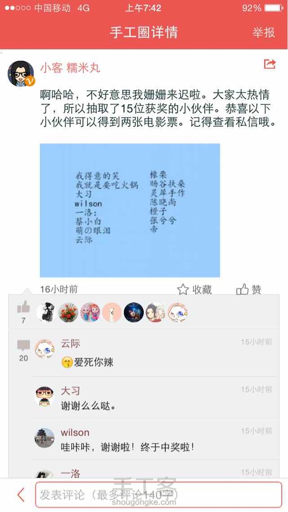 谢谢手工客,电影票收到!么么哒!太感谢了…
