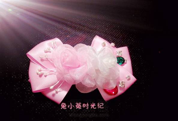 昨天晚上的手工发饰。上面两朵纱花是烧花,比较虐心的说,但是效果也是灵灵哒。粉红公主梦。是朋友送同事家小美女的礼物但愿她们都会喜欢。