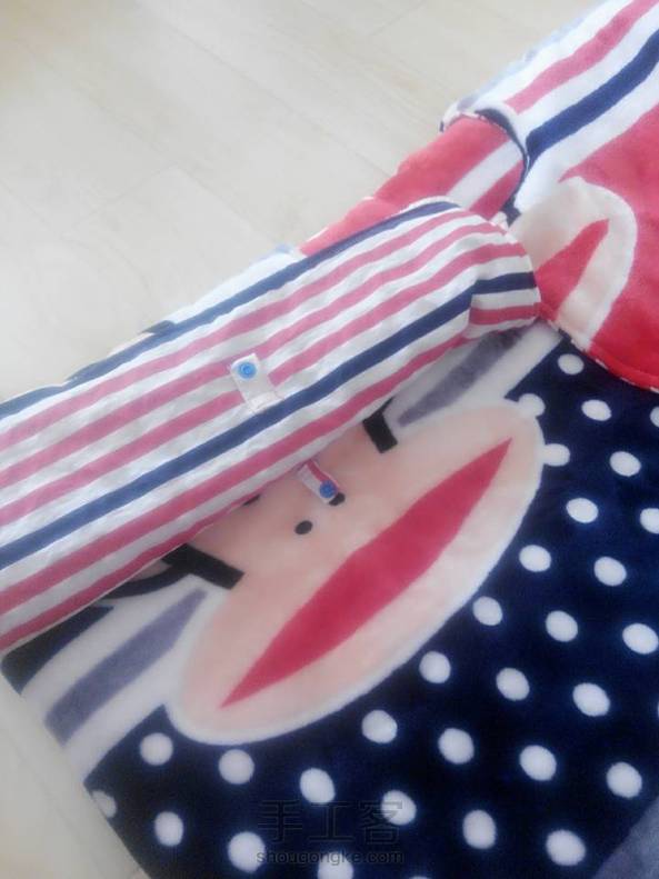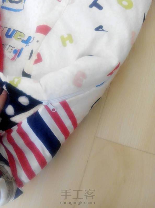 折腾一天的成果,超级睡袋。一面法莱绒布一面纯棉布,两面都可以用,两侧和底部都可以拉上拉链,顶部还有两块肩盖。妈妈再也不怕宝宝着凉了。最不完美的地方就是肩盖拉链位置应该上在拼接的这个面,实在不想改,除了不美观,用处一样。