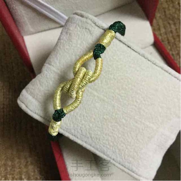 B玉线四股辫绕线作品,中间是双联结,这款做起来很简单,看上去也挺有范的,拿在手里也很有质感,省时省力,推荐给大家。