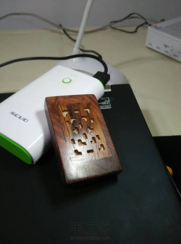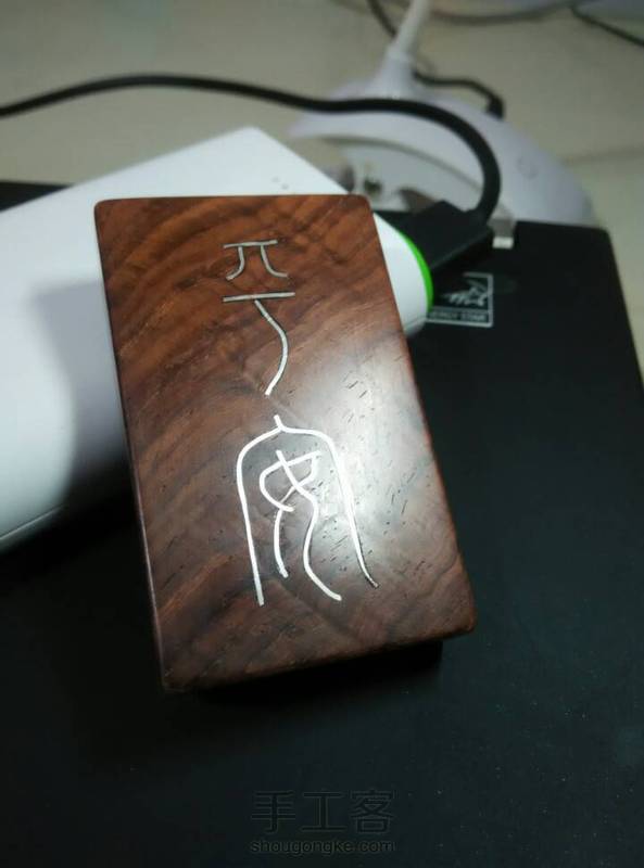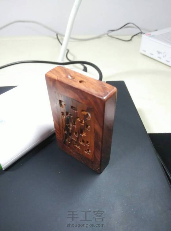 酸枝手牌,酸枝掏空填入檀香粉,重新封好,背面镶0.5银丝