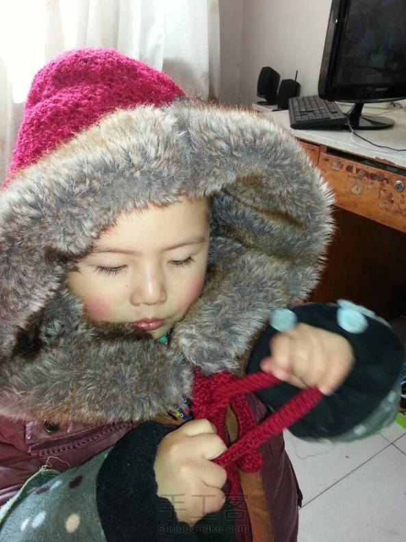 风吹海香随 回复 只是想念:嘻嘻(∩_∩)谢谢,从旧衣服上裁下来的帽子,然后外面钩的红毛线的,改天去送给我妈妈