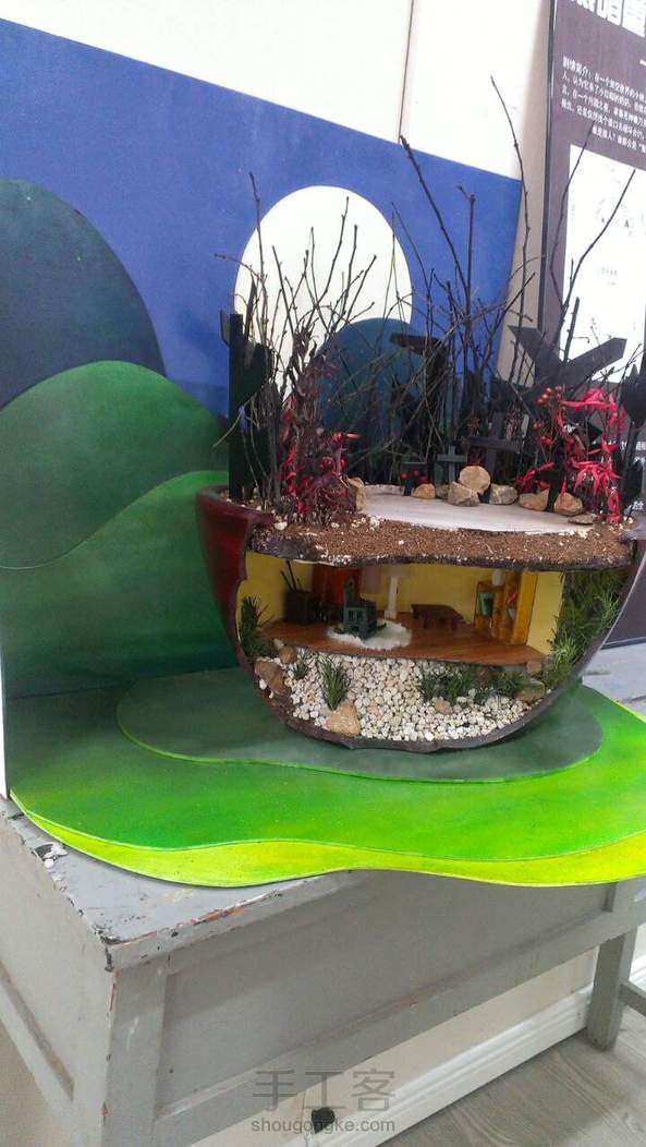 西瓜瓜西 回复 紫珊瑚:泡沫,PVC板,好多的,这两种用的比较多,形状都是磨出来的。那个孔雀是PVC板刻出来的,还有第六张的那个书架也是。第七张是海贼王,背后的那个浪花和船都是泡沫磨的。