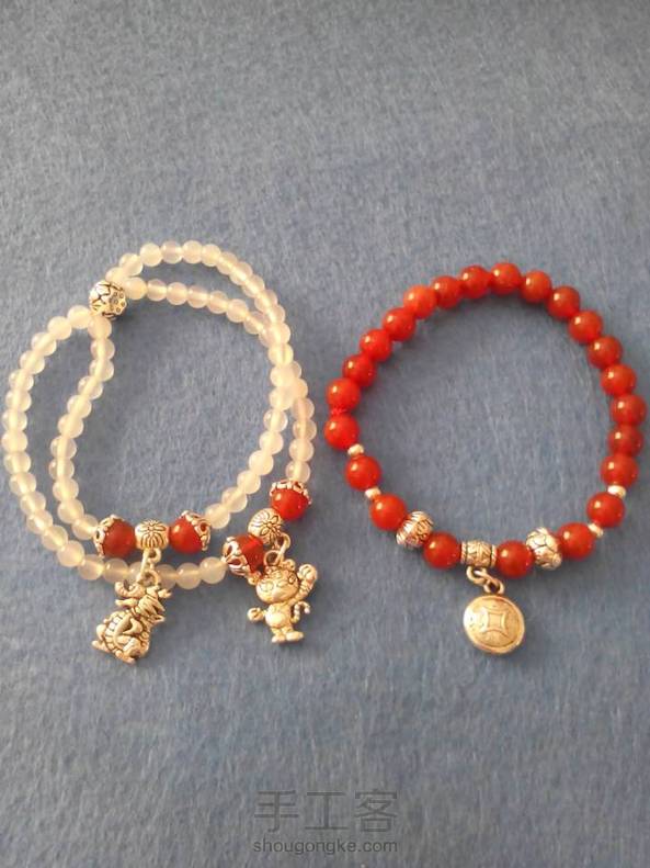 第一次穿手链,红白玛瑙配藏银,穿完发现配了个左青龙右白虎😄😄😄