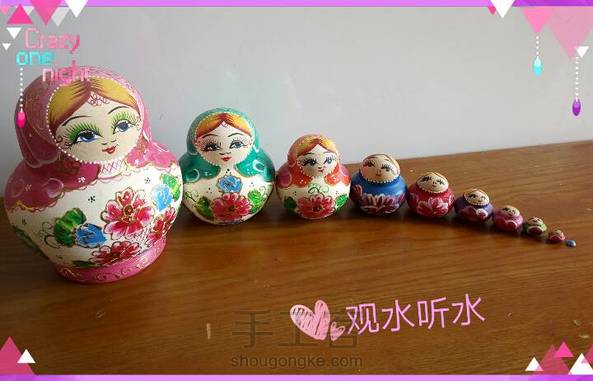 【俄罗斯套娃】 朋友去俄罗斯旅游,给偶带回一套美丽可爱的套娃,一套共十个。太喜欢了!
