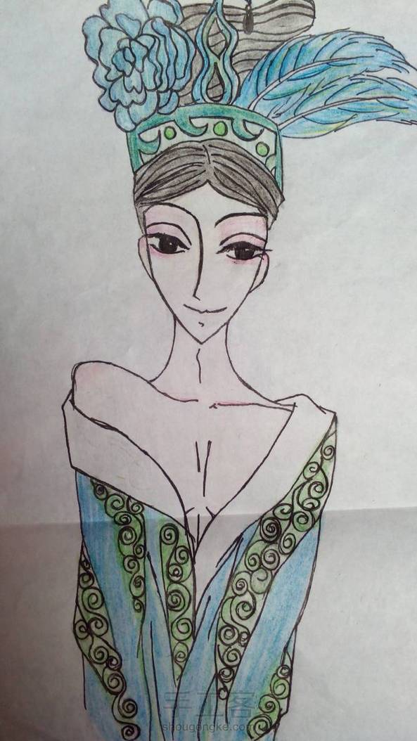 Cup:提建议的话,第一,线条需要精准,避免来来回回的反复摩擦。(左肩)第二,线条与线条接触的连接处需要更加小心处理,尽量不要重叠交叉(右肩衣服)第三,线条的粗细变化要平缓,流畅(五官)最后一点,既然使用线条表达,就尽量使每条线条都清晰可见,不可糊里糊涂的挤在一起(裙子花纹)