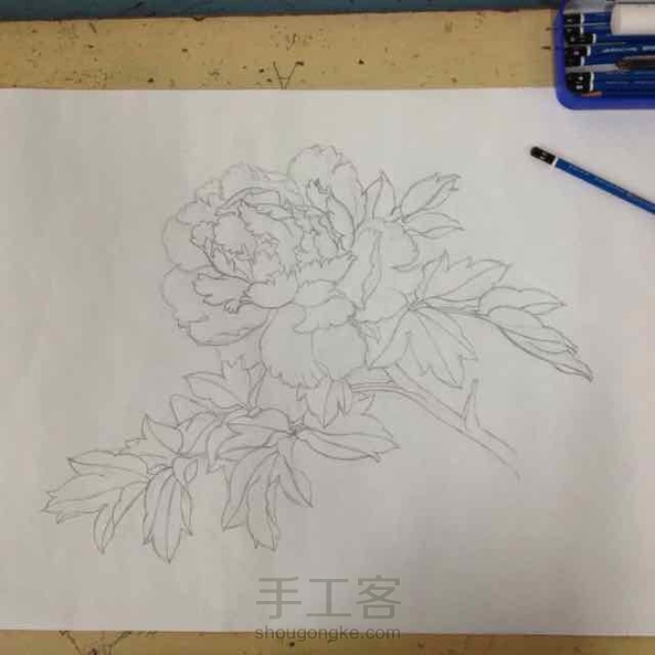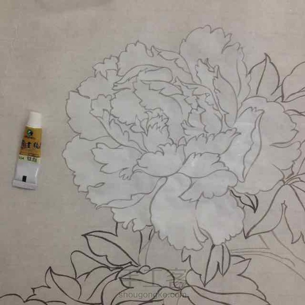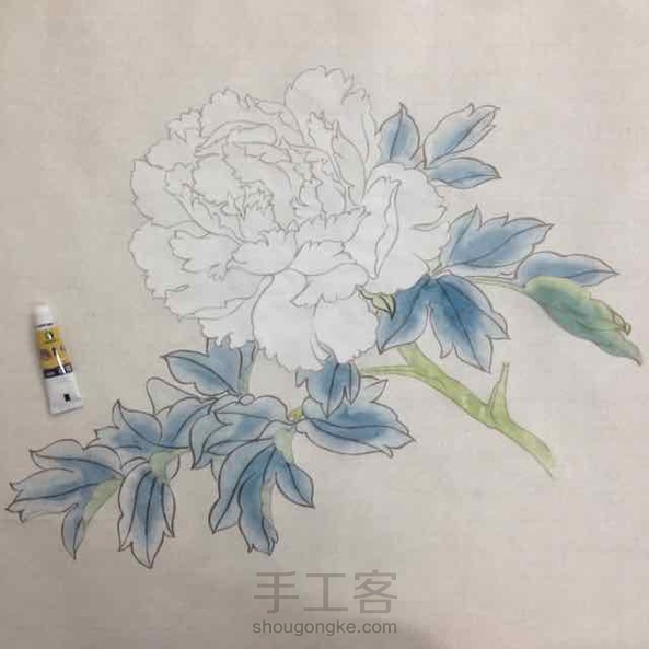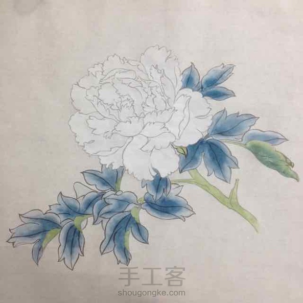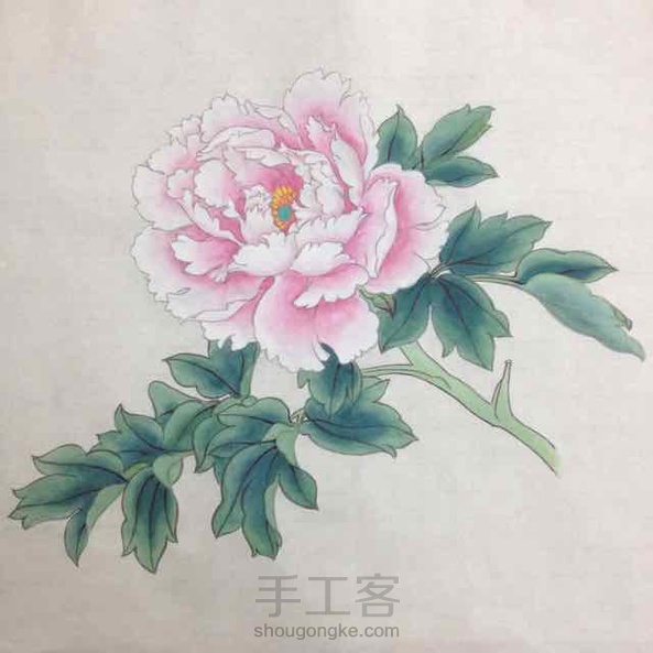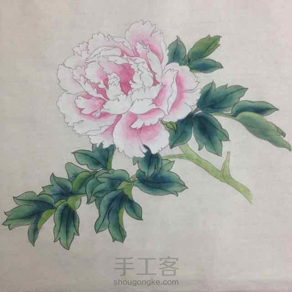 今天画粉牡丹拍了下过程图