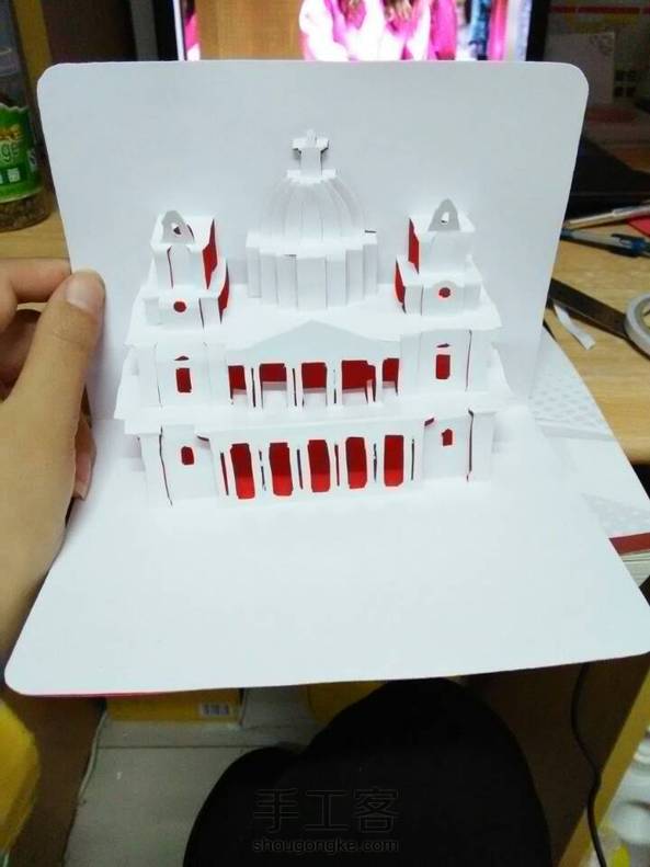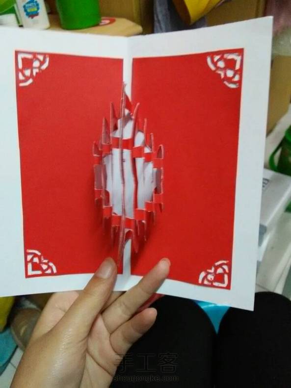 心静如水XIA 回复 小兔不二(´,,•㉨•,:这个我是在纸艺网上找的立体贺卡,哪里有详细教程,还可以下载模版,自己用小刀刻出来的!