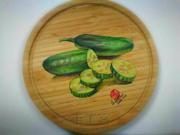 彩铅趣味绘画课程:切黄瓜。
