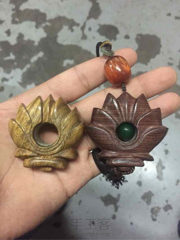 绿檀莲花挂件,教程同步发送。话说我这两个做的区别怎么这么大……之前做的好渣渣……