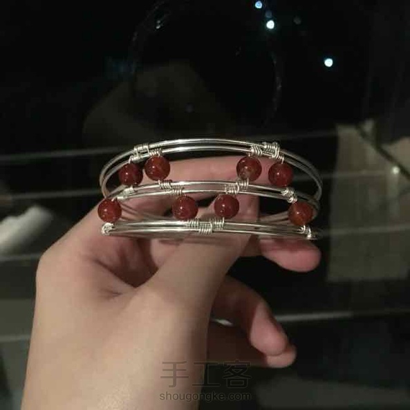 绕线手镯.......其实我当时是想拉点粗线出来接着做项坠,结果边看电视边顺手往手上一套,哎吗大小正好😂于是直接做了一镯子