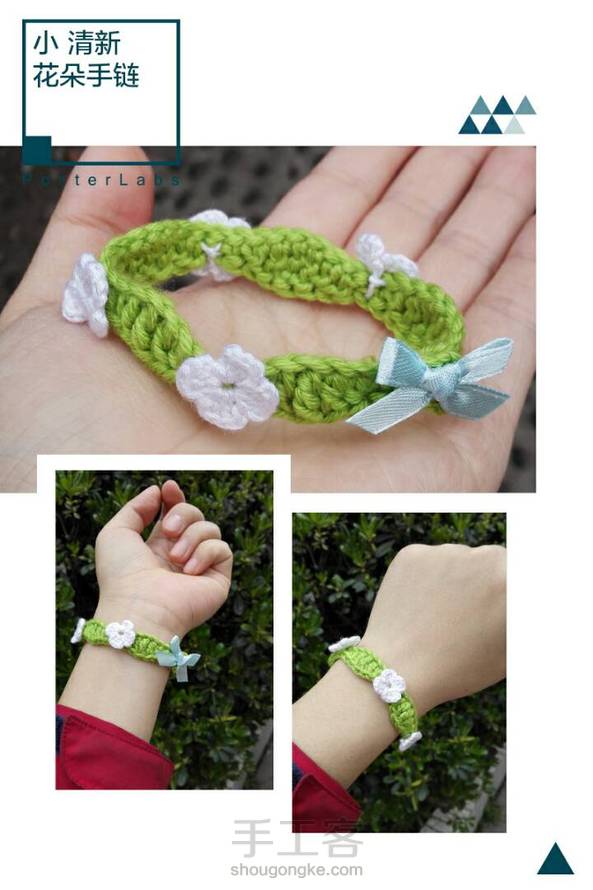 钩针毛线饰品,清新花朵小手链