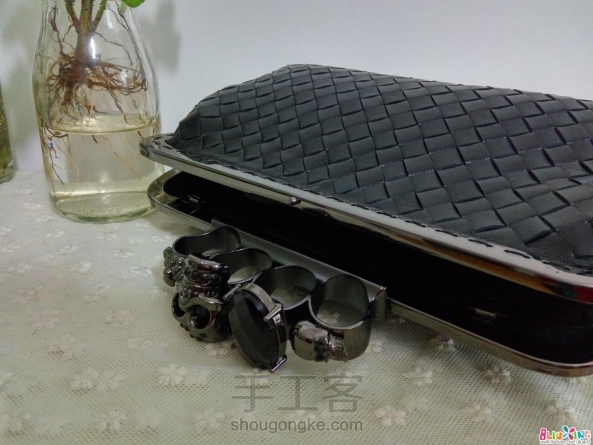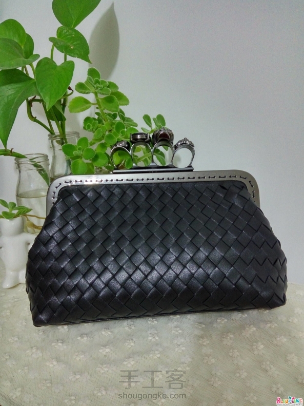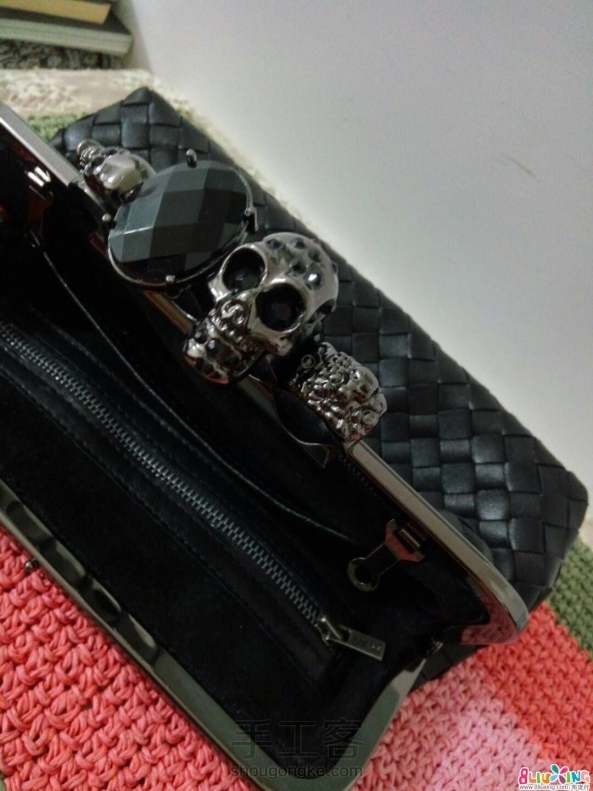 G调~羊皮编织骷髅头口金包