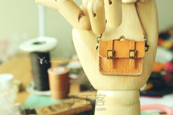 晒作品 → 手缝的迷你牛皮剑桥包,非常迷你,可以打开装东西哈哈。