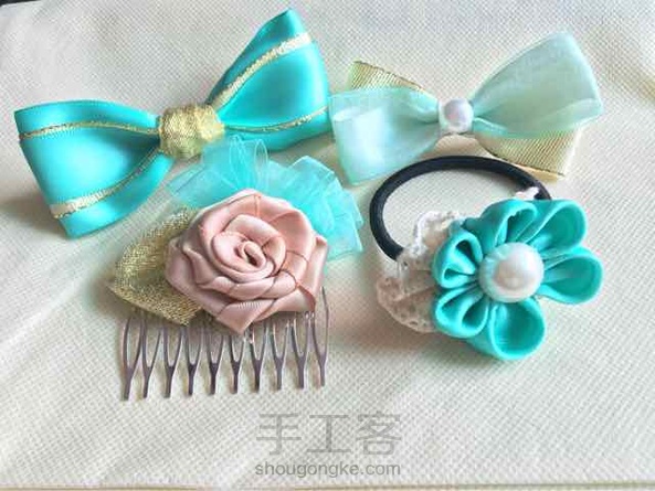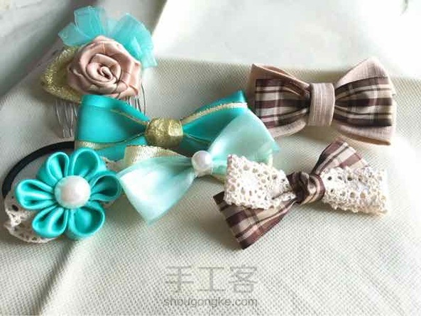 【发饰】蒂芙尼色系四个田园格子系两个。第一次做,细节有待改进呀~