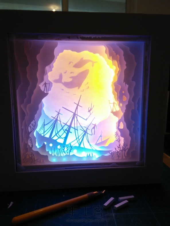 子虚山 回复 灵雪曦:光影纸雕,贴吧有些图纸,这份可能叫鲸船或者沉船一类的